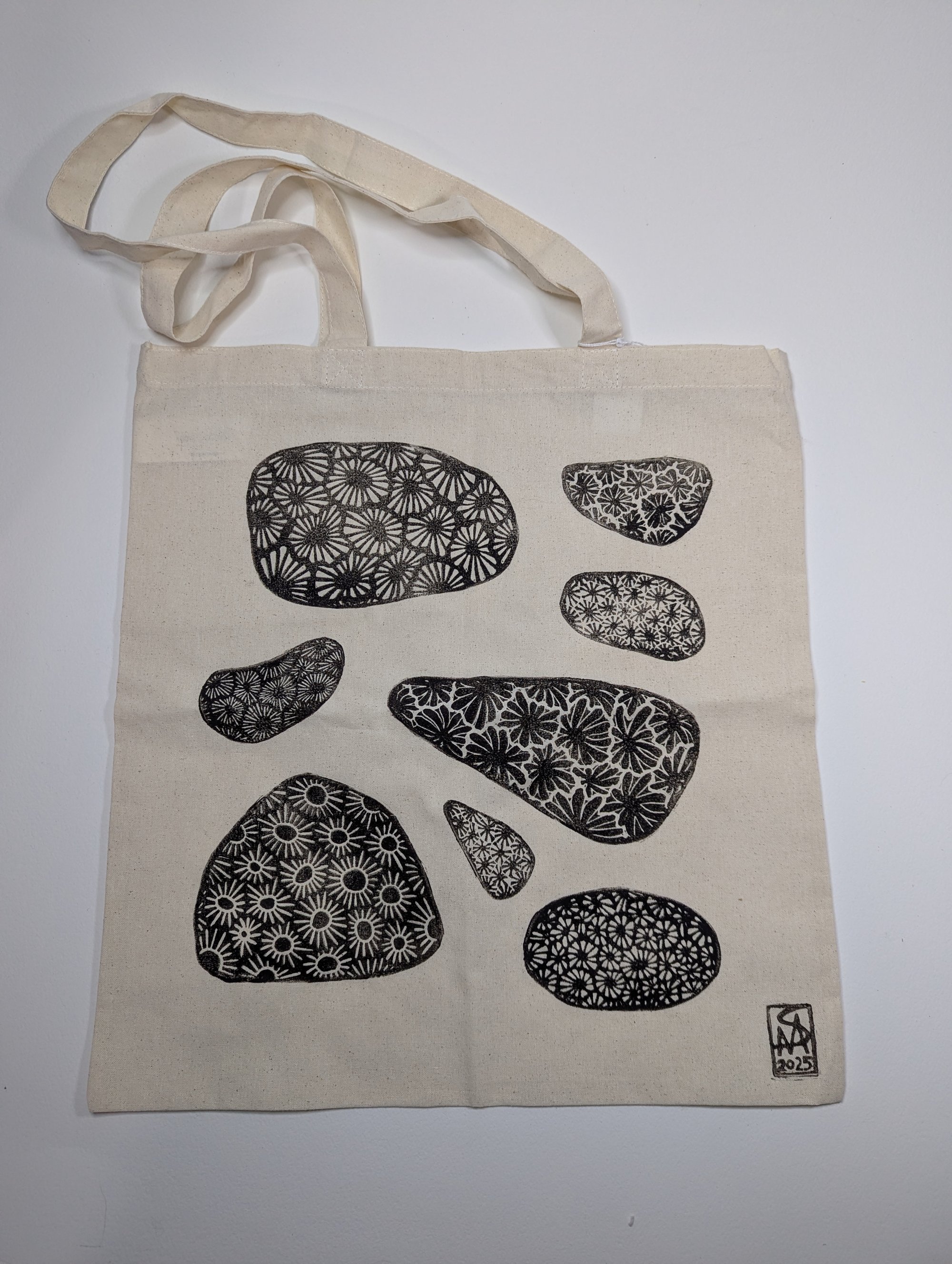Each tote is hand-printed from blocks carved by the artist onto a 100% cotton bag. Because of the nature of block printing, slight variations in color and ink coverage naturally occur, making each tote completely unique and truly one-of-a-kind. Each tote is hand-printed differently, and the design will be a surprise! Photos show examples from the current stock. This listing is for 1 tote bag.